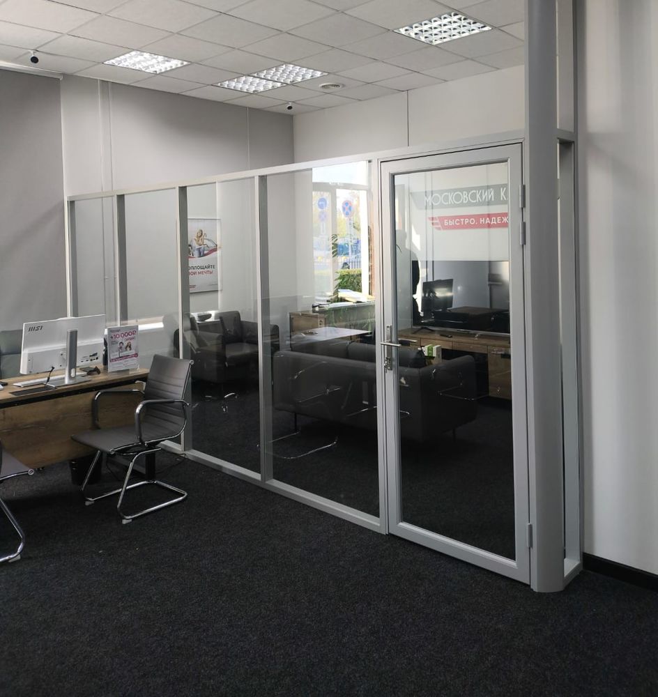 Стеклянная перегородка в автоломбарде Московский капитал